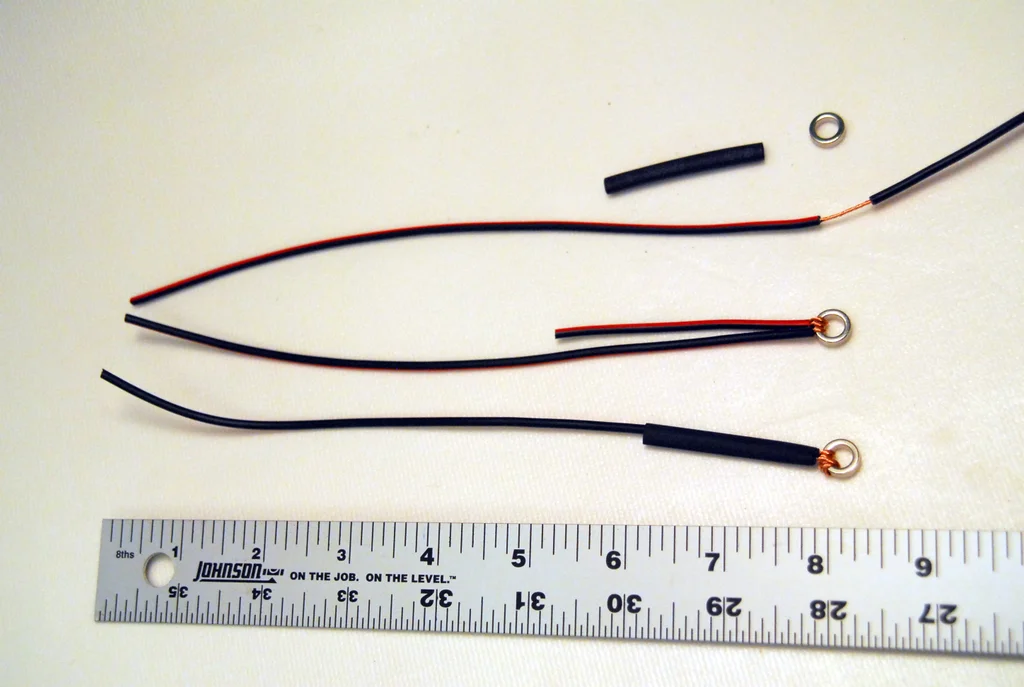 - Slide 2 inches of 3/16" heat shrink tubing over the long and short wire ends.