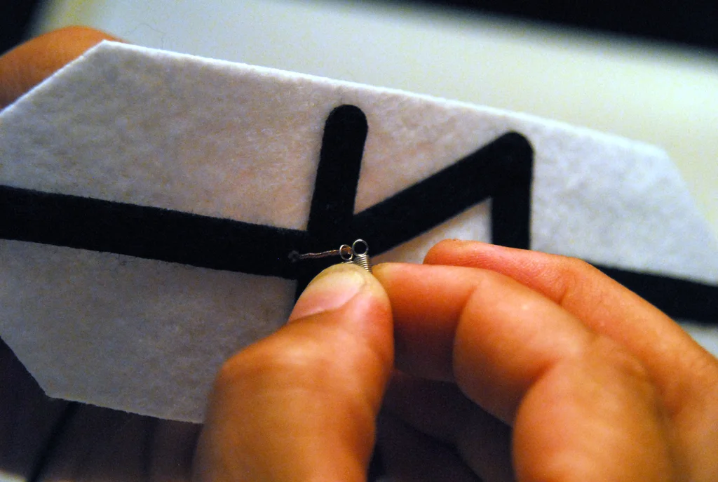 - Strip 3/4 inch of insulation off the other end of the Wire and insert the wire through the top felt piece.