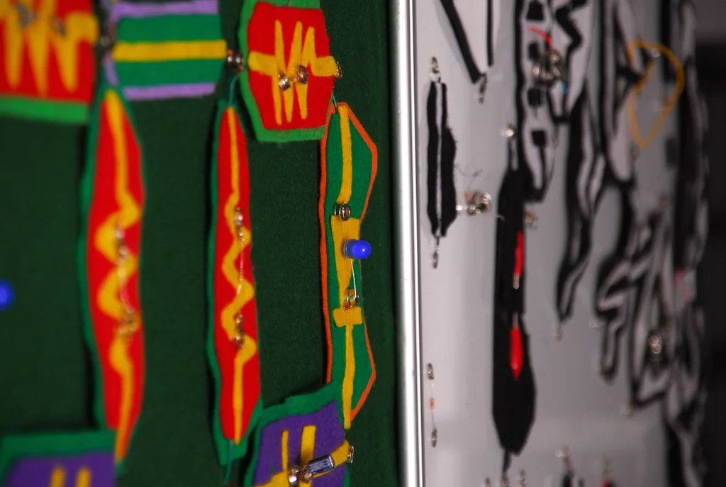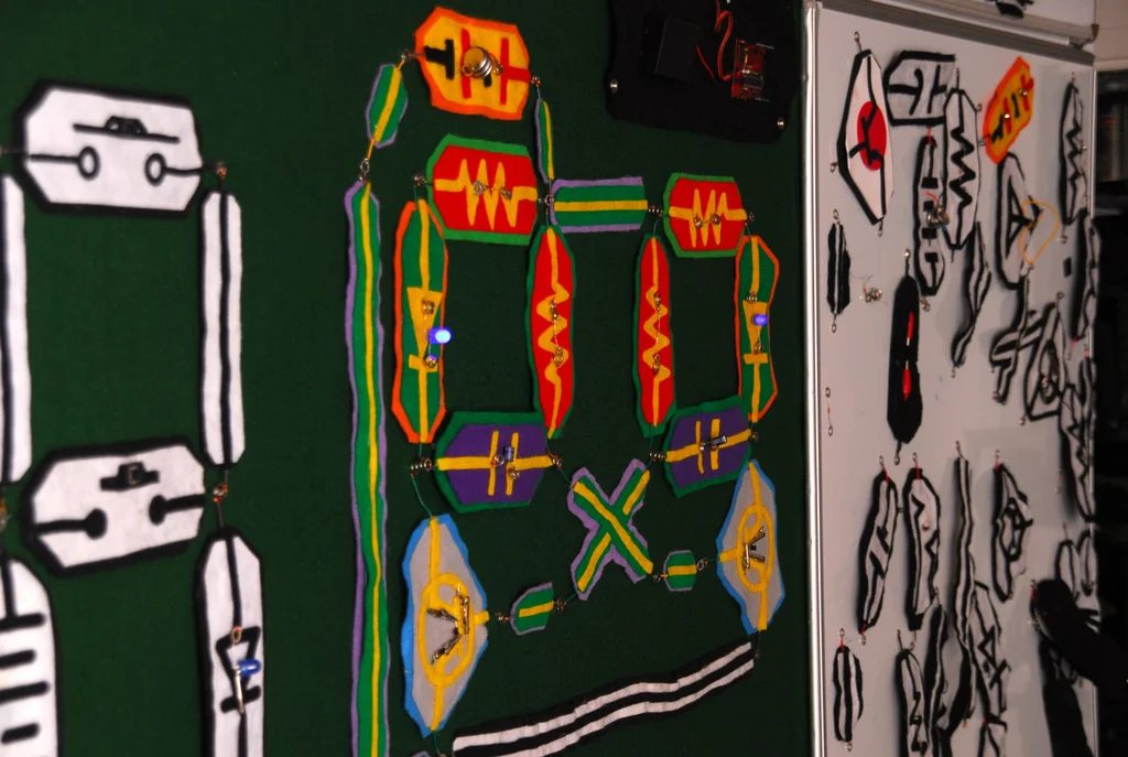Feltronics turns your refrigerator into a soft circuit breadboard (a large-format electronics project kit). That is, you can make real, working electronic circuits and projects using big fuzzy felt pieces and stick them to metal surfaces. Hackerspace Charlotte took home the Grand Prize from the Global Hackerspace Challenge with this project in 2011. Here we present an easy method for creating your own set of fuzzy Feltronics. We also have a few videos from when we introduced Feltronics to the World which will address many more questions than we can in text.
